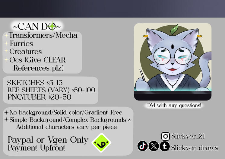 | Twitter | Insta | Linktree | TikTokOpen Commissions on VGen